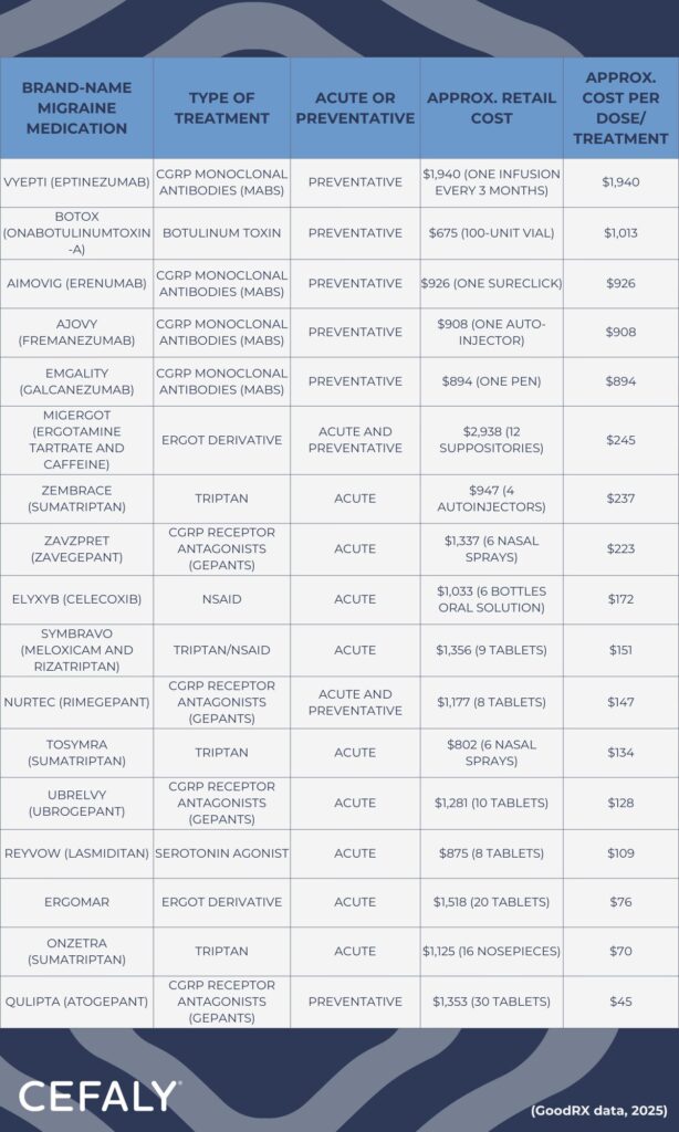 Migraine medication cost comparison